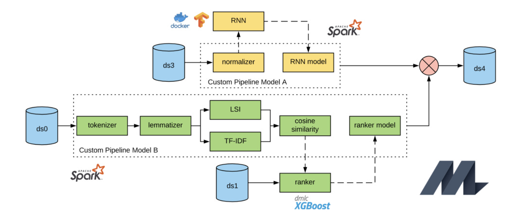 Most Michelangelo models (more here) are based on Apache Spark MLlib, a scalable machine learning library for Apache Spark. To handle high-QPS online serving, Michelangelo originally supported only a subset of Spark MLlib models with in-house custom model serialization and representation, which prevented customers from flexibly experimenting with arbitrarily complex model pipelines and inhibited Michelangelo’s extensibility velocity. To address these issues, the team at Uber evolved Michelangelo’s use of Spark MLlib, particularly in the areas of model representation, persistence, and online serving.